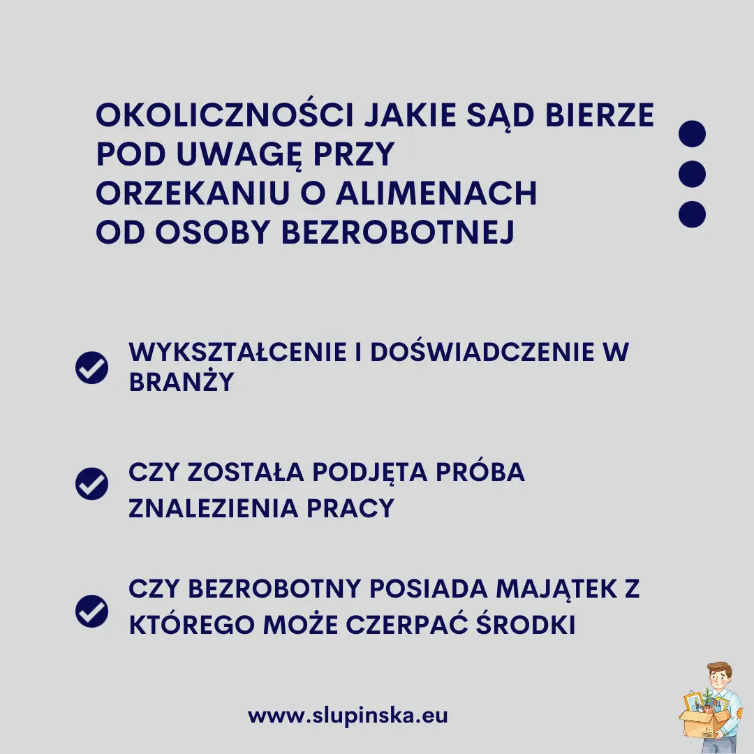 Sąd, badając sytuację osoby bezrobotnej, sprawdza m.in.: