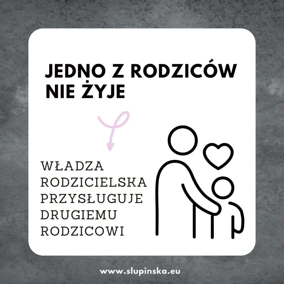✔️ Zgodnie z art. 94 KRO, jeżeli jedno z rodziców nie żyje albo nie ma pełnej zdolności do czynności prawnych, władza rodzicielska przysługuje drugiemu z rodziców. To samo dotyczy wypadku, gdy jedno z rodziców zostało pozbawione władzy rodzicielskiej albo, gdy jego władza rodzicielska uległa zawieszeniu.